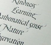 Studied typography from The Kazui Press, a letterpress printer, and studied calligraphy from Muriel Gaggini’s The MG School of Latin Calligraphy.